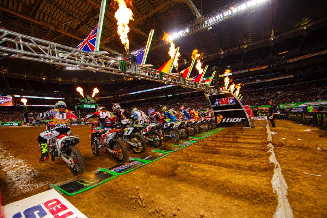 Holt sich Villopoto seinen vierten SX-Titel in Folge? Oder gelingt es seinen Widersachern, den Champ in einen Fehler zu hetzen? Wird Ken Roczen seine Rookie-Saison unter den ersten Drei beenden? Verzaubert uns Stewart weiterhin mit graziler Bikebeherrschung? Viele Rennen bleiben jedenfalls nicht mehr…