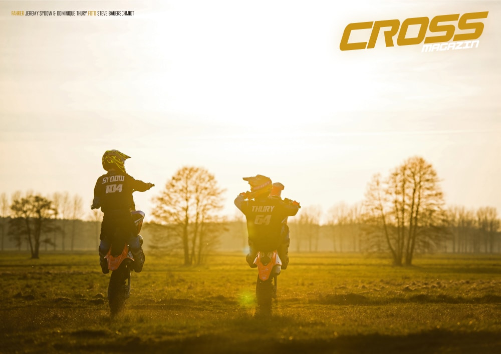 Das einzige was nicht Racing in dieser Ausgabe ist, ist unser Poster. Doch als Jeremy Sydow und Dominique Thury beim Shooting mit unserem Fotografen Steve Bauerschmidt gemütlich durch die Abendsonne Wheelies machten, musste wir es einfach als außergewöhnliches Poster im DIN-A2-Format bringen. Alle Abonnenten dürfen sich also über ein Poster mit romantischer Motocross-Stimmung freuen. Wer noch kein Abo hat, sollte dies schnellstens auf www.crossmagazin.de/abo bestellen, es winken zur Zeit tolle Prämien!
