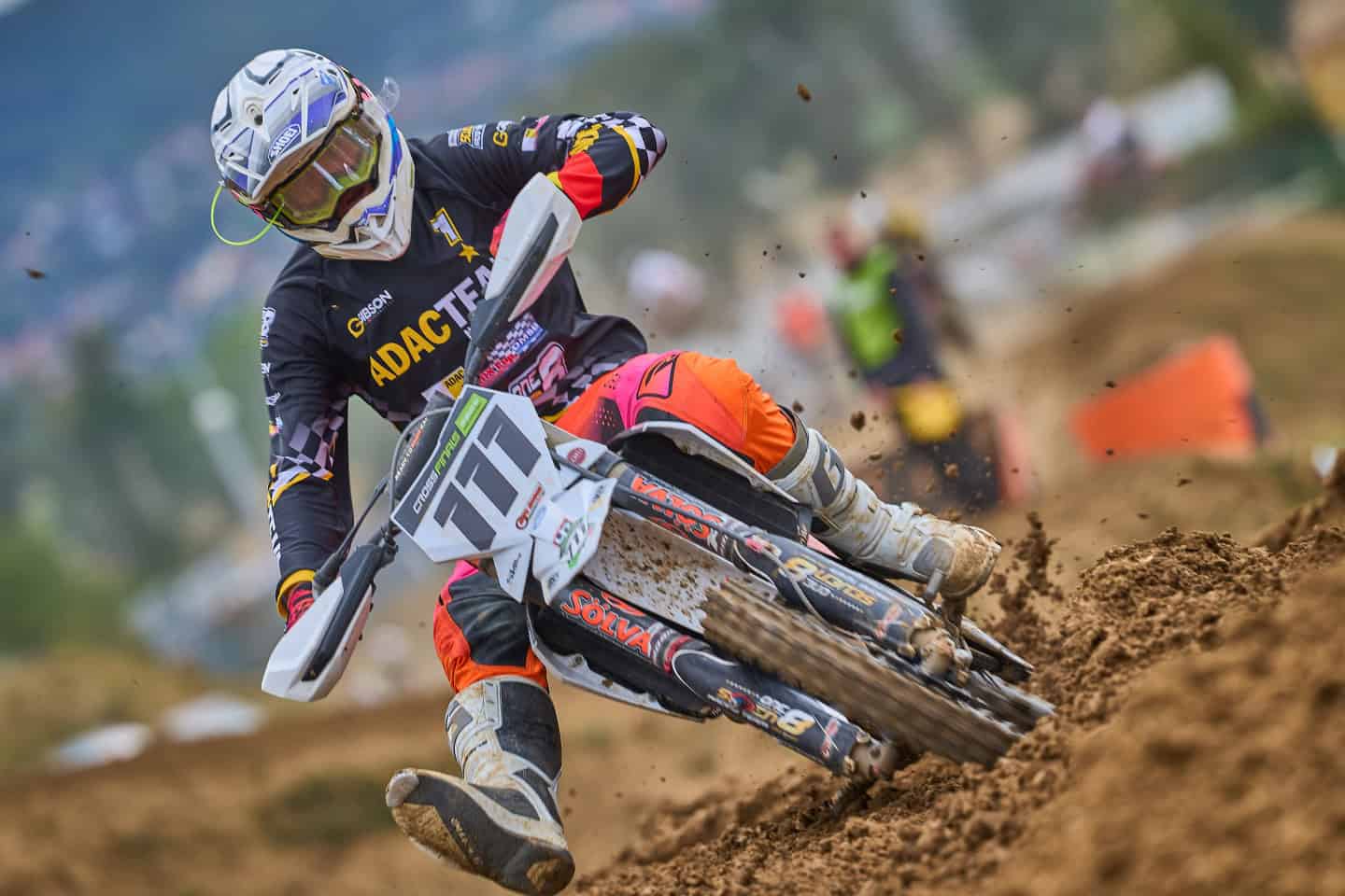 Auch in der MX1-Kategorie gab es einen Fahrer, der allen anderen die Show stahl: Phil Niklas Löb vom Team Nordrhein-Cup. Er sicherte sich nicht nur die Poleposition, sondern gewann auch beide Rennläufe souverän.