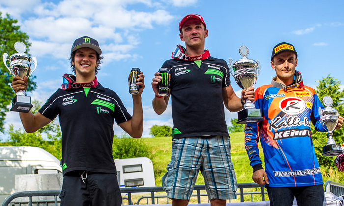 Im bisherigen Saisonverlauf sowohl bei den ADAC MX Masters als auch in der DM deutlich unter den eigenen Möglichkeiten und den Erwartungen seines Teams geblieben, glänzte Kalli-KTM-Pilot Jan Uhlig in Schopfheim mit einer konstant guten Laufleistung und am Tagesende mit dem dritten Treppchen auf dem Siegerpodium.