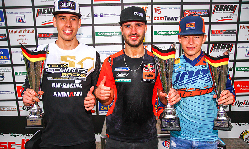 Zwar konnte sich Valentin Kees im zweiten Durchgang nach einem Holeshot von Richard Stefan (KTM) erneut die frühe Führung sichern, jedoch gelang es Collin Wohnhas, der als Fünfter aus der ersten Runde zurückgekehrt war, ihm noch kurz vor Ultimo die Spitzenposition und damit auch den eigentlich schon sicher geglaubten Tagessieg abzuknöpfen, wobei der Mann mit der rotunterlegten Startnummer #473 in den letzten beiden Runden einen Abstand von fast neun Sekunden herausfuhr. Maximilian Werner fuhr über die gesamte Zeit in den Top 3 und sicherte sich damit in der Konsequenz nicht nur Platz drei in der Tagesendabrechnung sondern auch die Vizemeisterschaft mit elf Punkten Vorsprung vor Kees. Die Top 5 in der Tagesendabrechnung komplettierten Sebastian Meckl (KTM) mit einem 5-4-Ergebnis und Justin Rock (Husqvarna) nach einem 4-6-Resultat.