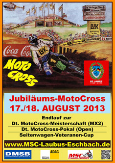 Nicht nur in Amerika und Belgien wird am kommenden Wochenende (17.18. August) anspruchsvolles Motocross gefahren, auch das heimische Laubus-Eschbach hat dem Publikum einiges zu bieten. So ist der in der mittelhessischen Gemeinde beheimate MSC bei der Veranstaltung zu seinem 60. Jubiläum der Gastgeber für das Finale der Deutschen MX Meisterschaft in der MX2-Kategorie und das siebte Aufeinandertreffen der Piloten des Deutschen MX Open Pokals.