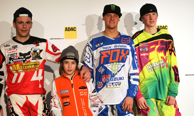 Beim traditionellen Pressetag im Vorfeld des ADAC Supercross Dortmund stellten sich in diesem Jahr Florent Richier (Suzuki Waldmann, Rasmus Jörgensen (Silent Sport Ortema Suzuki), Dennis Wolf (Suzuki Reinecke) aus Leverkusen und Nachwuchs-Talent Carl Ostermann (MAOAM-Racing) den Fragen der Journalisten und nahmen schon mal die Rennstrecke unter die Räder. Seht hier ein paar Impressionen unseres Fotografen Stefan Wasner von diesem Presse-Event:
