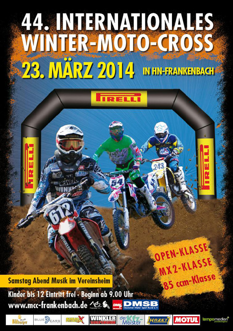 Mit der 44. Auflage des traditionsreichen Int. Winter-Motocross beim MCC Frankenbach e.V. steht uns am kommenden Wochenende schon der zweite deutsche Auftakt-Klassiker des Jahres 2014 in Haus, mit welchem der Frühling und die Outdoor-Saison auf Deutschlands MX-Tracks willkommen geheißen werden soll.