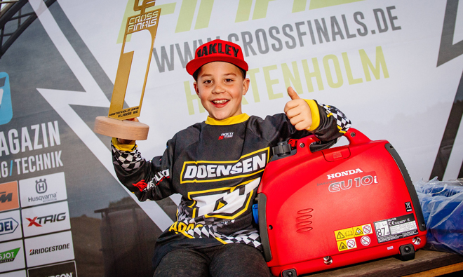 Wer bei den CROSS FINALS 2019 in Magdeburg glänzt, soll natürlich nicht ohne Lohn nachhause gehen. Den heißen Preis für den Sieger der Kids-65-Klasse liefert Honda!
