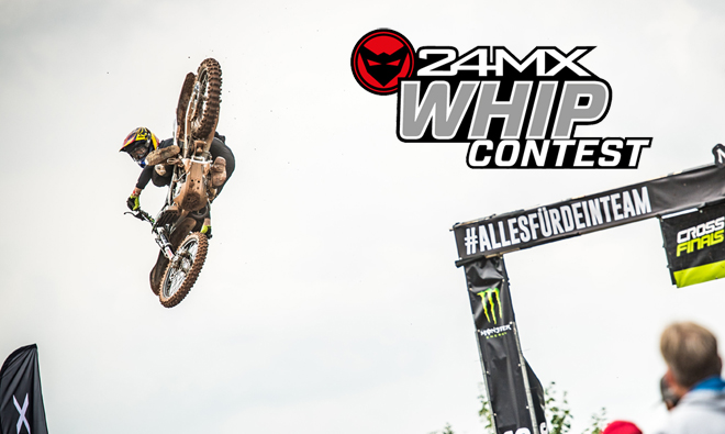 Springste quer, siehste mehr! Bei uns geht es nicht immer nur um schnelle Rundenzeiten. Beim 24MX Whip Contest werden auch die lässigen Querdenker unter euch gewürdigt. Dabei legt ihr euer Bike in mehreren Durchgängen so cool wie möglich quer oder flach oder gar beides und versucht dadurch unsere Jury von euren Whip-Qualitäten und deren Konstanz zu überzeugen. Habt ihr da eure Nase vorn, gebührt euch nicht nur wahrscheinlich der Respekt eurer Fahrerlager-Kumpels und die Herzen der Damen, sondern es winken zudem verlockende Sachpreise.