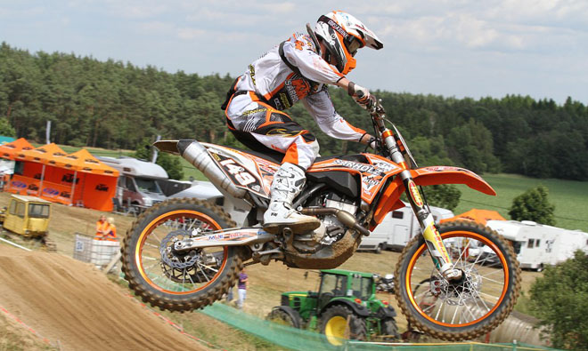 Zum fünften von insgesamt sieben Läufen der diesjährigen Deutschen Motocross Meisterschaft in der MX2-Kategorie ging es am vergangenen Wochenende mal wieder in den Osten der Republik, genauer ins brandenburgische Schwedt. Sommerliche Witterungsbedingungen mit Temperaturen um die 25°C sowie einem beständigen Sonne-Wölkchen-Mix und eine Kulisse von geschätzten 1.000 Zuschauern sorgten auf der gut 1.800 Meter langen Rennstrecke „In den Müllerbergen“ des MC Schwedt e.V. für insgesamt optimale Rennbedingungen.