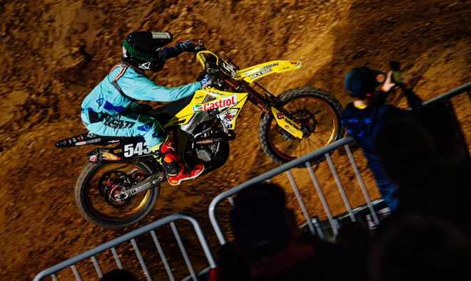 Gerade mal einen Monat fährt das deutsche Nachwuchstalent einen Viertakter und rollte fast ohne SX-Training am vergangenen Wochenende in Chemnitz ans SX2-Gatter. Dabei machte der CROSS-FINALS-Sieger von 2018 besonders am Samstag eine gute Figur und zeigte mit der Qualifikation für das Abendprogramm in der SX2-Klasse, dass er nach Jahren auf KTM offensichtlich sehr gut mit der Suzuki RM-Z250 zurecht kommt.