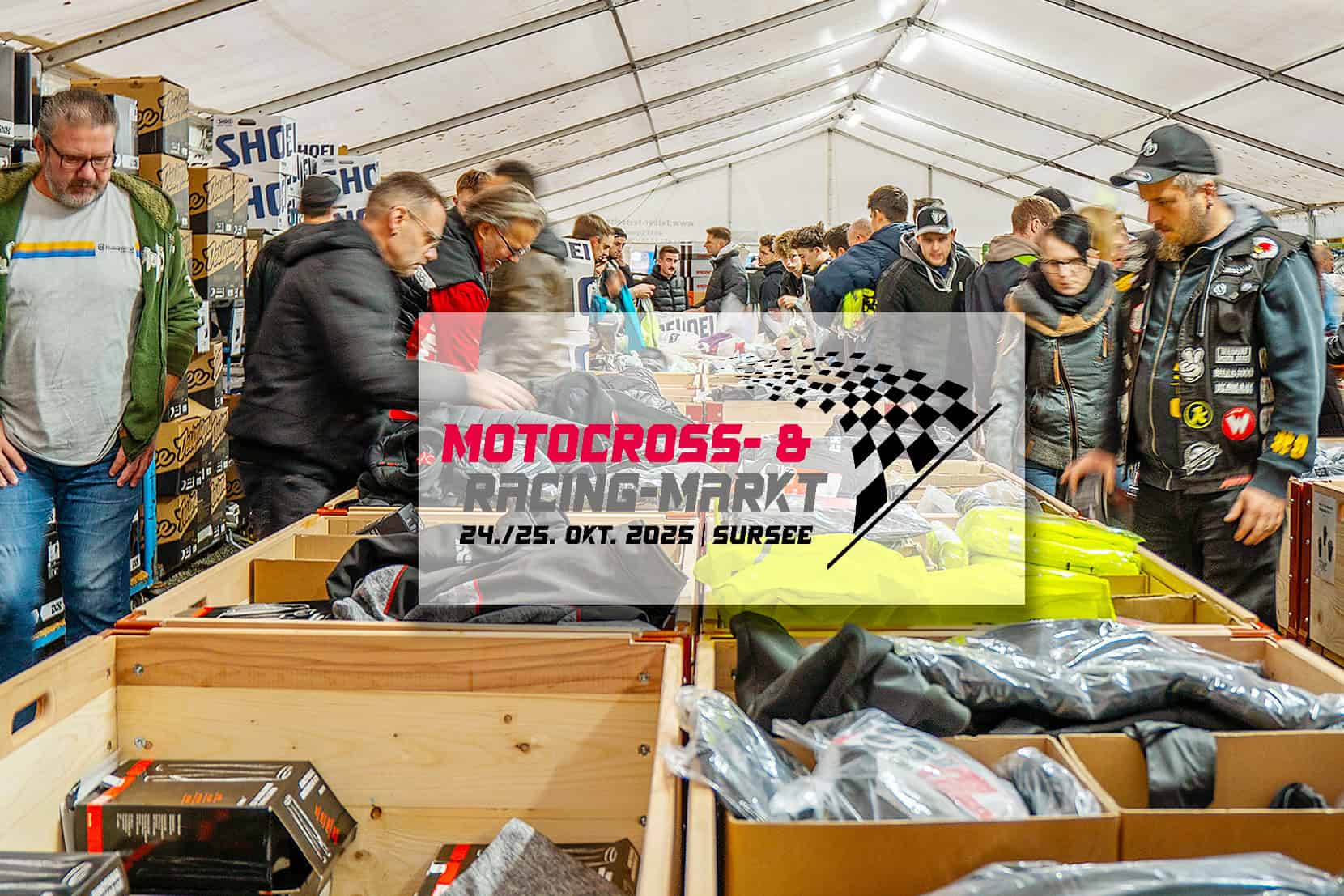 Motorrad-Liebhaber aufgepasst! Am 24. und 25. Oktober 2025 findet in Sursee (Schweiz) auf dem Firmengelände der hostettler group ein öffentlicher, kostenloser Occasionsmarkt (Trödelmarkt) für Motocross-, Enduro-, Supermoto-, Strassenrennmaschinen und Quads aller Marken statt. Das Highlight des Events ist eine Zeltstadt mit attraktiven Angeboten an Racing-Bekleidung, Reifen, Fahrrädern und Zubehör. Genauso attraktiv sind natürlich auch die […]