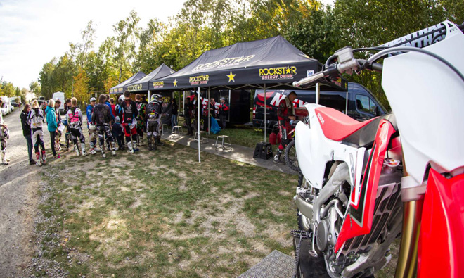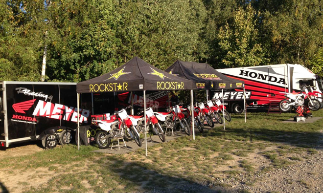 Der Allersberger Honda Händler und Rennstall Inhaber Klaus Meyer rief zum Testride und 120 Fahrer folgten prompt, per Voranmeldung, seinem Ruf. Jeweils vier CRF 250R und CRF 450R stellte Klaus Meyer für diesen Tag zur Verfügung, und sie waren alle im Dauereinsatz. Neben den Testmotorrädern, konnten die heißblütigen MXler natürlich auch ihre eigenen Motorräder nutzen und somit war allerhand los auf der 1,8 Kilometer langen Lehmbodenstrecke.