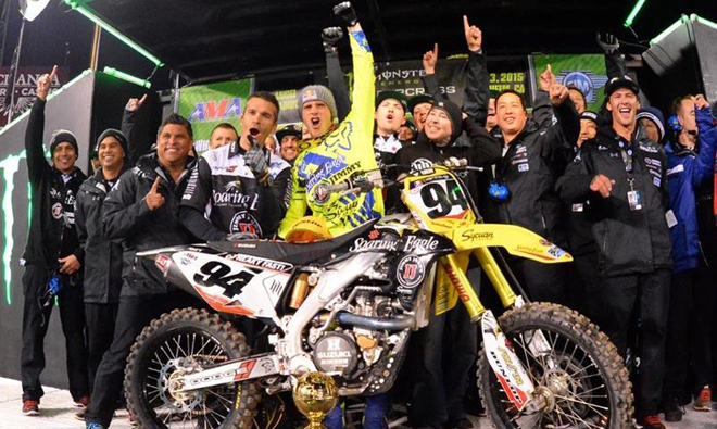 Ken Roczen gewinnt das erste Rennen zur Supercross Weltmeisterschaft 2015 auf Suzuki RM-Z450.