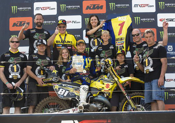 Brian Hsu und das Team Rockstar Energy Suzuki Europe gewinnen die Motocross Europameisterschaft EMX125 mit der Suzuki RM125.