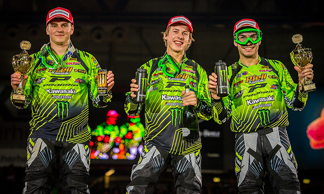 Büttners Teamkollegen im Thüringer Monster Energy Kawasaki Elf Team Pfeil, Luca Nijenhuis und Julien Lebeau, konnten ebenfalls glänzen. Nijenhuis war in allen Wertungsläufen auf dem Podest. Am Samstag schnappte sich der Niederländer mit zwei zweiten Rängen sogar den Tagessieg vor Büttner und dem Franzosen Lebeau. Das Stuttgarter Gesamtresultat entspricht dem Tabellenstand im ADAC SX Cup nach der ersten von vier Saisonstationen: 1. Büttner (43 Punkte), 2. Nijenhuis (38), 3. Lebeau (31).