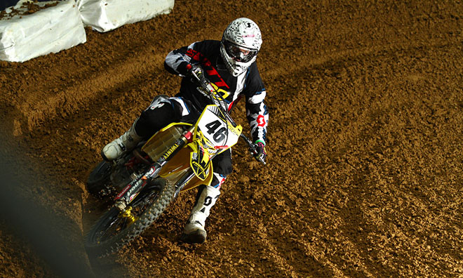 Eindeutig der stärkste Fahrer an diesem Wochenende im Team war der Franzose Cyrille Coulon (Titelfoto). Nachdem Coulon bereits in der letzten Saison für das Team Twenty Suspension Suzuki beim deutschen Supercross an den Start rollte, war es hier in München sein erster Auftritt in dieser Saison. Cyrille war am Freitagabend auch schon auf dem Weg ins Finale, als er im Last-Chance-Race in Führung liegend vom Zweitplatzierten unnötig abgeräumt wurde, zu Boden ging und den Sprung ins Finale dadurch leider verpasste. Besser lief es am Samstag, wo der Franzose mit zwei zweiten Rängen im Vorlauf und Halbfinale locker seinen Weg ins Finale fand und dort auch um die vorderen Plätze kämpfte. Cyrille war schon am Dritten dran und verpasste am Ende einen Podiumsplatz nur um weniger als eine Sekunde: „Die Aktion am Freitag war sehr ärgerlich und absolut unnötig. Samstag fühlte ich mich richtig gut, schade das ich am Ende das Podium so knapp verpasst habe.“