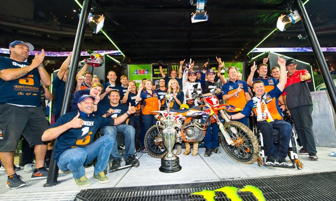 Red Bull KTM Werksfahrer Ryan Dungey holt in Runde 14 der Monster Energy Supercross Weltmeisterschaft in Houston den allerersten 450 Supercross WM-Titel für das Red Bull KTM Werksteam.