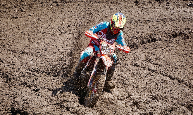 Am Sonntag lief es in der MXGP-Klasse zuerst nicht so gut, im ersten Wertungslauf wollte Jeremy einfach zu viel und hatte dann auf der extrem ausgefahrenen Strecke mit Armpump zu kämpfen so dass er nur den 30. Platz über die Linie bringen konnte, im zweiten Wertungslauf hat er sich in spannenden Zweikämpfen und besserem einteilen seiner Kräfte auf einen respektablen 24. Platz vorgekämpft.
