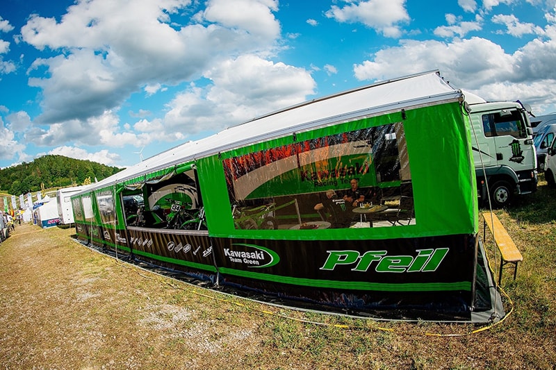 reiste als Tabellenleader in die MX-Hochburg östlich von Stuttgart. Der belgische Kawasaki-Pilot wollte nach zuletzt starken Leistungen seinen Platz an der Spitze der Top-Kategorie MX Masters bestätigen – was nach Platz sechs und vier in den beiden Wertungsläufen auch gelang. Jetzt kommt der 25-Jährige Flame mit 13 Punkten Vorsprung zur vorletzten Saisonstation am 31.08./01.09. nach Bielstein.