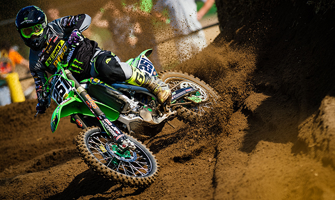Seit Jahren zählt das Thüringer Monster Energy Kawasaki Elf Team Pfeil zu den Top-Teams in der international anerkannten Serie. Auf der schnellen Sandstrecke „Rund um den Mühlberg“ baute die Truppe von Teamchef Harald Pfeil in der Kategorie MX Masters vor allem auf Vorjahressieger Jens Getteman. Der 24-Jährige Belgier unterstrich seine Qualität im ersten Lauf prompt mit einem starken vierten Platz. Im zweiten Lauf wurde Getteman in einen Massensturz beim Start verwickelt. Nach starker Aufholjagd ging es für den amtierenden Vizechamp noch bis auf Platz acht nach vorne. Das ergab Tagesrang fünf in der Endabrechnung.