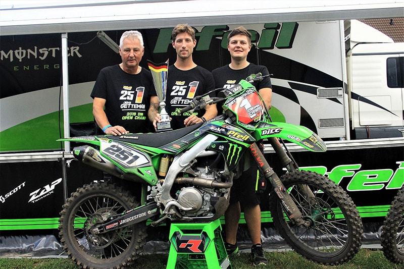 Mission Titelverteidigung erledigt. Jens Getteman wiederholt seinen Erfolg aus dem Vorjahr und gewinnt die Deutsche Motocross-Meisterschaft Klasse Open. Der 25-Jährige Kawasaki-Pilot macht es im brandenburgischen Jüterbog zunächst spannend, ist am Ende aber dann doch mit großem Vorsprung der alte und neue Champion in der DM Open.