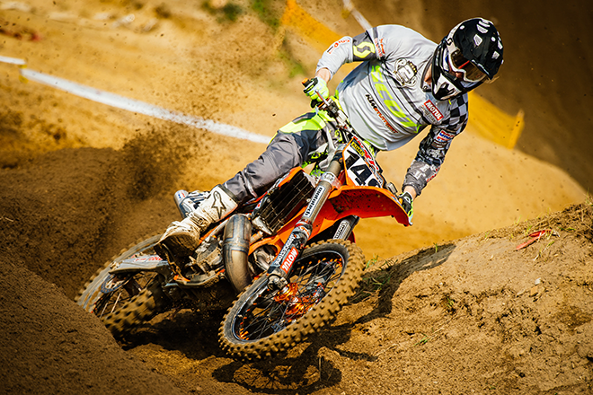 Im zweiten Rennen lief es dann deutlich besser. Aus der ersten Runde auf Platz 17 liegend, kämpfte sich der KTM-Pilot Position um Position nach vorne, um am Ende mit seiner KTM 300 SX einen guten 11. Platz ins Ziel zu bringen. „Im ersten Lauf bin ich durch den beschädigten Krümmer wohl ein paar Runden mit einem sehr mageren Gemisch unterwegs gewesen, deshalb haben wir entschieden für den zweiten Lauf auf das Ersatzbike zu wechseln, was gut funktionierte. Auf der langen, tiefsandigen Startgeraden habe ich natürlich Nachteile gegenüber den leistungsstärkeren Viertaktern, aber ich konnte gut nach vorne fahren und mein Tempo bis zum Schluss halten,“ äußerte sich Dennis zufrieden zu Lauf zwei. „Das es für mich bei den ersten Rennen im Sand schwer werden würde Top Platzierungen zu erreichen, war fast zu erwarten. Der erste Lauf war Pech, der zweite stimmt mich aber zuversichtlich,“ so Dennis weiter.