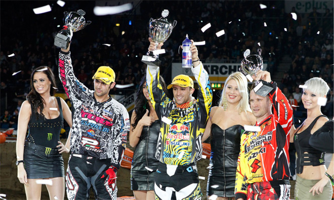 Traditionell wurde die deutsche Supercross-Serie am vergangenen Wochenende in Stuttgart gestartet. Dominierender Mann in der SX1-Klasse war eindeutig Mike Alessi. Der Amerikaner startet in Deutschland für das Sturm Racing Team und gewann jedes einzelne Rennen, in dem er an den Start ging. Alessi wurde recht kurzfristig vor der Veranstaltung verpflichtet und fand so großen Gefallen an der deutschen Serie, dass er auch beim SX-Cup in München am 17./18. Dezember starten will.