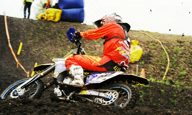 Doch als am Sonntagmorgen pünktlich zum ersten Warm-up der Regen einsetzte, drehte sich der Wind und Nicolai Hansen zeigte in den beiden Masters-Endläufen jeweils eine super Reaktion am Startgatter. „Meine Starts waren so gut und ich hätte wirklich zwei Top-Resultate einfahren können. Doch ich hatte einfach Probleme mit dem Zustand der Strecke, ich mag den Track nicht und am Ende hab ich Recht behalten… In Lauf eins kam ich als Fünfter in die Startkurve, lag anschließend lange auf vier, um dann zu stürzen! Meine Vorderradbremse blockierte und ich verlor etliche Plätze. Im Zweiten kam ich noch besser auf die Startgerade, aber dann verlor ich meinen Rhythmus und konnte erst zum Ende des Rennens wieder schnellere Runden fahren. Insgesamt war es schade, dass ich hier nicht mit mehr Punkten wegfahre.“