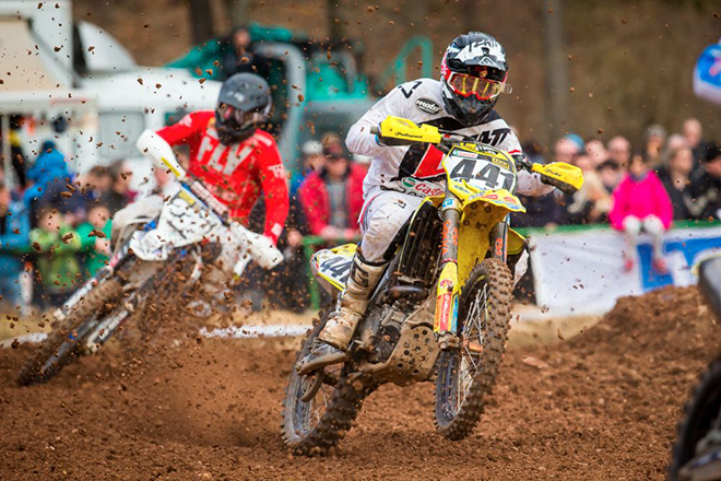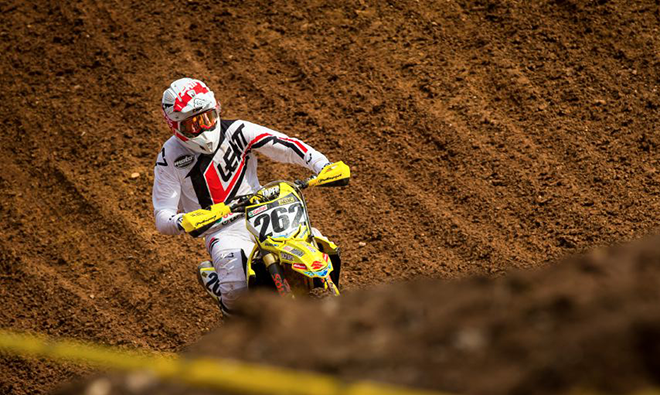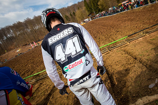 Neu im Team ist Phillip Eggers und wie Mike wird auch der Wusterwitzer die DM Open und die ADAC MX Masters auf der Suzuki RM-Z 450 bestreiten. Den Auftakt ging Phillip noch etwas nervös an, war aber mit dem elften Rang seiner Quali-Gruppe halbwegs zufrieden: „Vor dem ersten Rennen für das neue Team ist man natürlich nervös und ich habe mir auch selbst zu viel Druck gemacht,“ erzählt der 21-Jährige. Der Start zum ersten Lauf war gut und so reihte sich Phillip auf dem zehnten Rang ein. Dann schlug allerdings das Pech zu: „Nach ca. 20 Minuten als Zehnter stürzte vor mir ein Fahrer und ich konnte nicht mehr ausweichen. Dabei hat sich mein Schalthebel derart verbogen, dass ich das Rennen in einem Gang zu Ende fahren musste.“ Trotzdem reichte es noch zum 16. Platz.