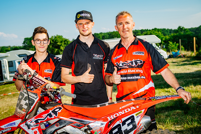 Nathan Renkens (MX1) „In der Qualifikation bin ich schon ganz gut gefahren mit einem zehnten Platz in meiner Gruppe. Im ersten Rennen bin ich super gestartet und konnte richtig die Leistung meiner KMP Honda auf den Boden bringen. In der ersten Kurve war ich dann zweiter und habe dann bald angefangen den ersten zu attackieren. Am Ende des Rennens war es ein dritter Platz nachdem ich noch eine Position an den Kollegen aus der MXGP abgeben musste. Voll der Motivation durch dieses erste Podium bin ich im zweiten Lauf wieder gut gestartet, leider lag in der ersten Kurve mein Teamkollege Jeremy vor mir und da musste ich ausweichen. Als siebzehnter nahm ich dann das Rennen auf. Ich merkte schnell, dass meine Rundenzeiten gut sind und konnte mich Position um Position auf P8 nach vorne kämpfen. Das hat dann für einen Gesamtrang 3 gereicht, ich bin sehr glücklich dieses Ergebnis für mein Team, meine Eltern