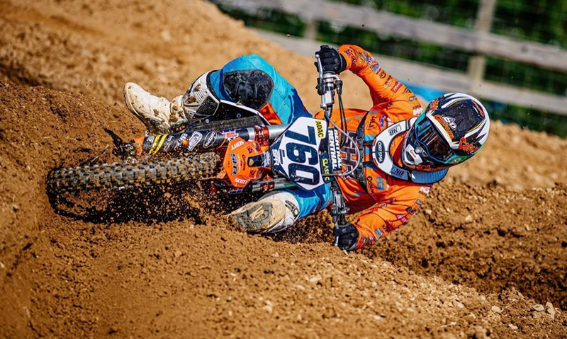 Über die Nacht zum Sonntag änderten sich die äußeren Bedingungen gewaltig, Regen und Kühle waren nun an der Tagesordnung. Damit hatte unsere Nr. 1 so gar kein Problem. „Die Rennen im Sand haben mir nicht wirklich getaugt“, meinte der Österreicher. „Aber hier auf dem harten Boden habe ich mich richtig wohl gefühlt. Zudem hat mir der Regen in der Nacht und am Morgen vor allem in Lauf 1 ein bisschen in die Karten gespielt. Da hat sich meine Enduro-Erfahrung bezahlt gemacht. Dazu hat der Start endlich mal gepasst und ich konnte von Platz 6 noch auf 3 vorfahren. So war ich natürlich topmotiviert für Lauf 2, wo mein Start wieder sehr gut war. In der Schlussphase bin ich dann beim Überrunden aufgehalten worden und habe so leider das Tagespodium knapp verloren. Da kann ich dem ADAC kein Lob geben, die blaue Fahne wurde nicht gut gehandhabt. Das ist etwas traurig gelaufen, aber so ist der Rennsport.“