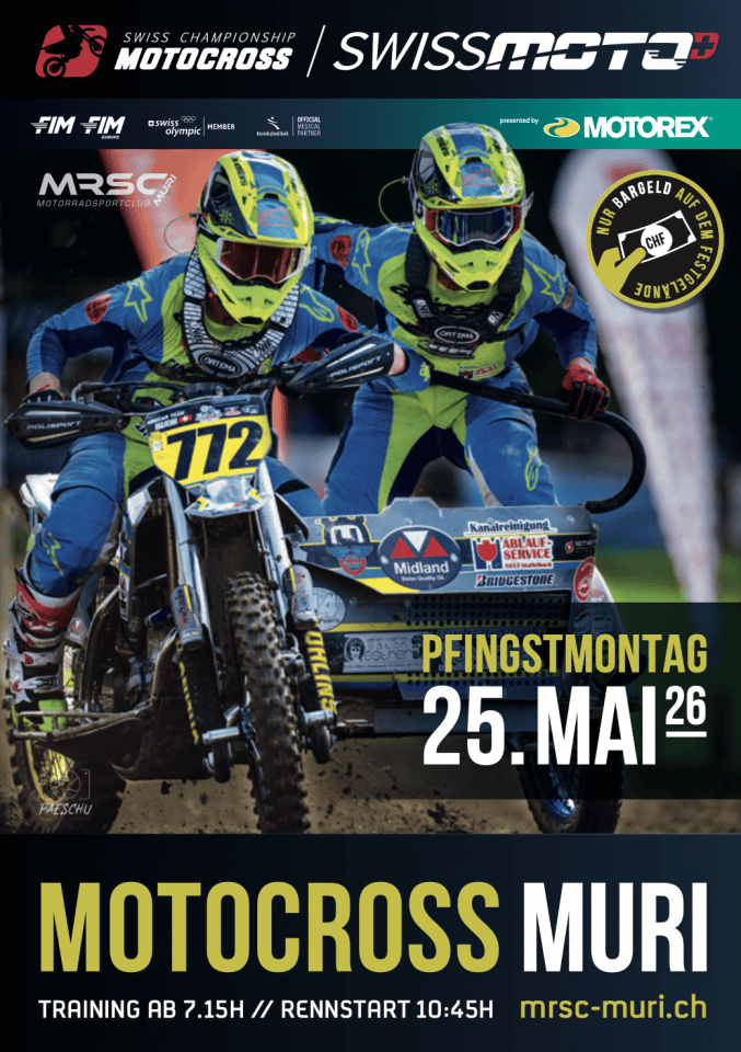 Am 25.05.2026 findet in Muri im Aargau (Schweiz) ein internationales Motocross-Rennen im Rahmen der Swiss Moto Motocross Meisterschaft statt. Die Besonderheit: Der Veranstalter legt hier ein Preisgeld von über 20 Tausend Schweizer Franken auf den Tisch, was umgerechnet etwa 21 Tausend Euro entspricht. Was genau hinter dem Konzept steckt und warum ihr diese Veranstaltung auf keinen Fall verpassen solltet, erfahrt ihr hier.