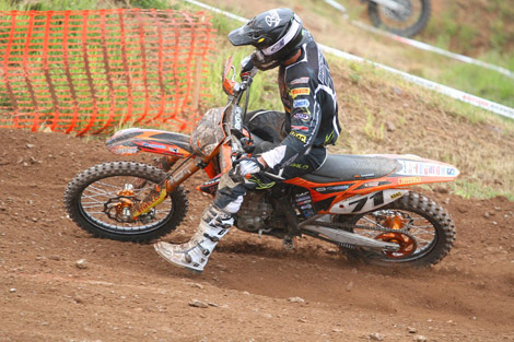 Diesmal wechselte ich meinen Startplatz und dies sollte sich auch auszahlen. An der ersten Kurve war ich etwas zu schnell, sonst wäre der Holeshot meiner gewesen. So reihte ich mich auf Platz zwei ein und konnte die ersten Runden das Tempo vom Führenden mitgehen und sogar Druck ausüben.