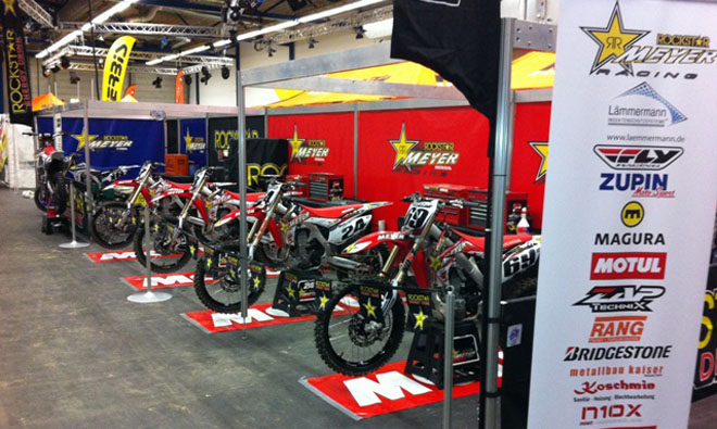 Es war ein bombastischer Auftakt für das Rockstar Meyer Racing Team beim 30. ADAC Supercross in Stuttgart. Bobby Kiniry, der in der diesjährigen Supercross-Saison für das Rockstar Meyer Yamaha Racing Team in der Klasse SX1 an den Start geht, biss die Zähne kräftig zusammen und fuhr sich mit einem fantastischen Start an die Spitze seiner Gruppe. Trotz abgerissenen Meniskus, entschied der US-Boy den ersten Vorlauf für sich und bekam als erster die Zielflagge zu sehen. Sein Teamkollege Daniel Blair, beendete den ersten Vorlauf auf Rang 3 und sicherte sich neben Kiniry, auf seiner Rockstar Meyer Honda, einen Platz im Halbfinale. Cole Siebler, der mit Steffen Leopold im dritten Vorlauf der Klasse SX1 an den Start ging, beendete diesen auf Rang 3 und sicherte sich ebenfalls einen Platz im Halbfinale.