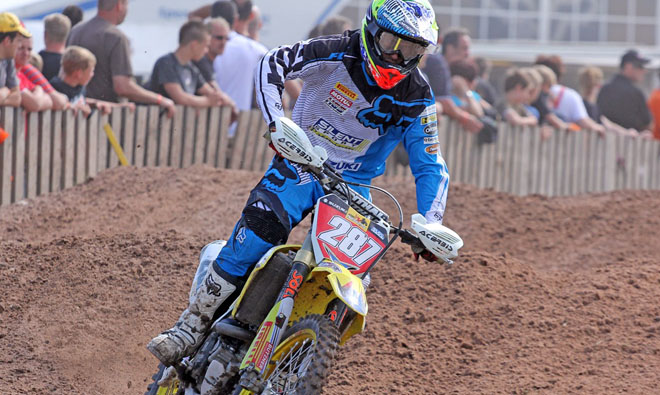 : „Für mich war es wirklich cool, nach so langer Zeit mal wieder ein Rennen auf meiner Heimstrecke zu fahren. Ich glaube es ist bestimmt schon 10 Jahre her, dass ich im schönsten Motocross Loch der Welt Rennen gefahren bin. Die Strecke war wirklich super vorbereitet. Besser hätte man es nicht machen können. Trotz der Hitze hatte es der Verein im Griff gehabt, die Veranstaltung ohne Staub durchzuziehen, was nicht gerade einfach war. Schon im Zeittraining konnte ich zeigen, dass ich mich auf der Strecke wohlfühle. Mit 3,5 Sekunden Vorsprung war ich Erster. Der Start zum ersten Lauf war sehr gut und ich konnte als Erster um die Ecke gehen, ab da an gab ich die Führung auch nicht mehr ab. Der Start zum zweiten Lauf war nicht so gut wie im ersten, doch ich konnte schon nach drei Kurven die Führung übernehmen. Danach hab ich noch einmal die Führung für eine Runde an Fillip [Neugebauer] abgeben müssen. Nachdem ich ihn dann in den Sandwellen zurücküberholt hatte, konnte ich mich von Runde zu Runde weiter absetzen und so mit zwei Laufsiegen auch die Tagewertung holen.“