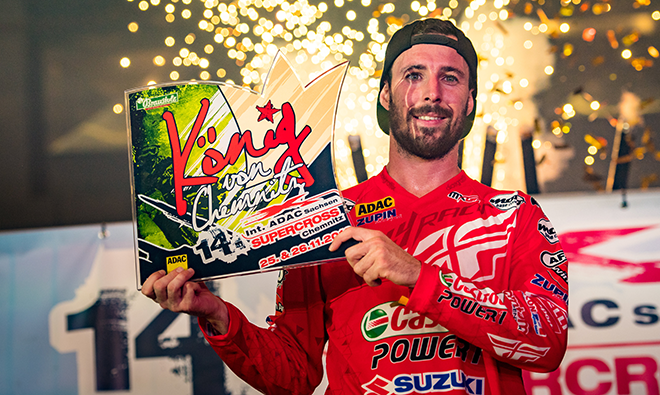 Cunningham, der eine Woche zuvor bereits das Supercross in München gewonnen hatte, zeigte in Chemnitz ein beeindruckendes Tempo und durfte sich nach zwei zweiten Plätzen verdient zum Gesamtsieger krönen lassen. Der Amerikaner ließ sich auch von schwachen Starts nicht aus dem Konzept bringen und begeisterte die Fans mit seiner fairen Fahrweise und großem Kämpferherz. "Ich hatte leider an beiden Abenden keine guten Starts", räumte Cunningham ein. "Deshalb hat es auch nicht mit dem Tagessieg geklappt. Aber ich denke, ich habe gute Aufholjagden gezeigt und hatte viel Spaß in den Rennen. Und der Gesamtsieg ist ja auch nicht schlecht!"