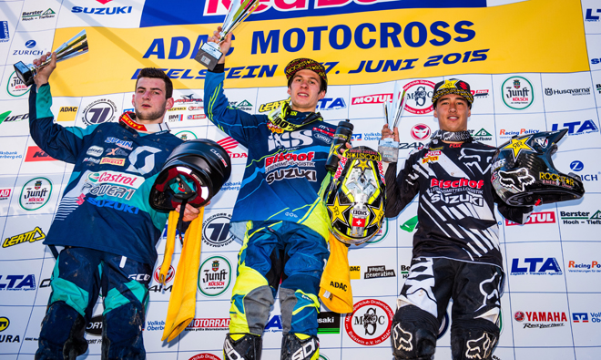 Maximalergebnis für Suzuki beim ADAC MX Masters in Bielstein: In der Masters-Klasse stehen mit Jeremy Seewer, Glenn Coldenhoff und Dennis Ullrich gleich drei Suzuki Piloten auf dem Treppchen! Doppelsieg für Brian Hsu im Youngster Cup.