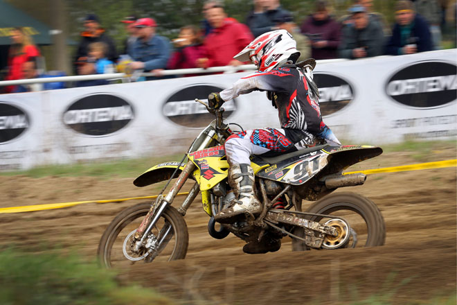 Optimale Bedingungen also für Tim Koch und seine Suzuki, der aber bereits am Samstag mit der schweren Sandstrecke so seine Probleme hatte: „Im Freien Training war es wie immer wichtig meinen Rhythmus zu finden, denn gerade Drehna ist eine Strecke ist, wo man schnell seinen Rhythmus verliert und verkrampft fährt. Genau das passierte mir leider auch im Qualifying. Ich gab mein Bestes, konnte jedoch nicht über einen 15. Platz hinauskommen. Ich war damit direkt für die Endläufe qualifiziert, aber nicht zufrieden.“