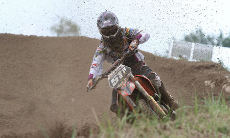 Im Freien Training kam ich noch sehr gut mit dem tiefsandigen Rundkurs klar und konnte dabei die fünftschnellste Rundenzeit fahren. Aber in der anschließenden Qualifikation sah das dann schon wieder ganz anders aus. 🙁 Ich war auf einer schnellen Runde unterwegs, als ich bei einem Sprung eine Kante erwischte, weshalb es mich ziemlich heftig abgeworfen hat. Leider konnte ich anschließend keine richtige Zeit mehr fahren und musste mich mit Startplatz 17 begnügen. 🙁