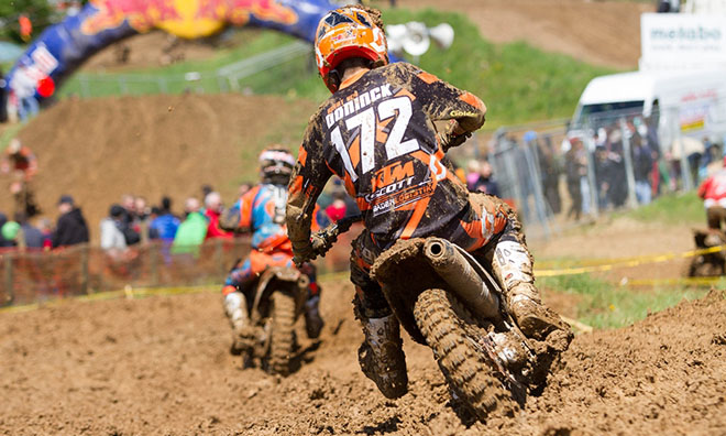 Mit dem zweiten Podium in dieser Saison erkämpfte sich Brent van Doninck die Tabellenführung im ADAC MX Youngster Cup und macht deutlich, dass er den Titel in diesem Jahr holen will. Das wechselhafte Aprilwetter schien sich selbst im Mai noch nicht vollends ausgetobt zu haben und so zeigte es sich äußerst durchwachsen. Starke Regenschauer gingen immer wieder nieder und die Strecke entwickelte sich nach und nach zu einer nur schwer zu bewältigen Aufgabe für Mensch und Maschine.