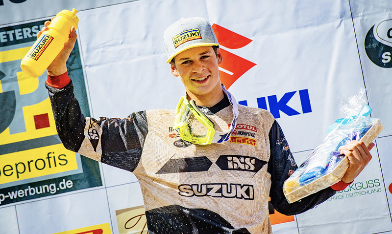 Bei hochsommerlichen Temperaturen fand das fünfte Rennen des ADAC MX Youngster Cup im hohen Norden Deutschlands statt. Auf der kräfteraubenden Sandstrecke des MCE Tensfeld wurden Mensch und Material vor 7.500 Zuschauern auf eine harte Prüfung gestellt, die sowohl Jett Lawrence als auch seine Suzuki RM-Z250 mit Bravour bestanden.