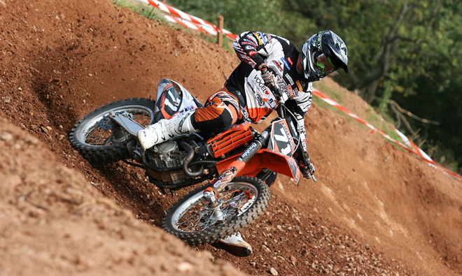 So ging ich ohne Druck ans Gatter und das zahlte sich mit dem Holeshot aus. Leider verlor ich die Führung und Platz zwei schon nach wenigen Kurven, aber ich merkte dass mein Speed gut war und so versuchte ich Platz drei mit allen Mitteln zu verteidigen. Etwa zur Hälfte des Rennens musste ich nach einem kleinen Fehler Wouts passieren lassen und zehn Minuten vor Rennende machte Heidecke noch einmal ordentlich Druck. Ich quetschte alles aus meiner KTM raus und konnte so den vierten Platz verteidigen.