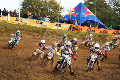 Klasse 1 (50ccm): Die größte Herausforderung stellte die anspruchsvolle Rennstrecke in Tensfeld an die kleinen Fahrer der Klasse 1. Die Sechs- bis Neunjährigen zeigten jedoch vollen Einsatz und boten den Zuschauer tollen Motocross-Sport. Am Ende konnte sich der Eichendorfer Constantin Piller gegen die Konkurrenz durchsetzen und siegte verdient vor Peter König aus Eberswalde (ADAC Berlin-Brandenburg). Das mit dem 8-Jährigen ein Pilot des ADAC Südbayern den Sieg einfuhr, war gegen die Sandhasen aus den anderen Regionalclubs schon eine Überraschung. Piller hatte sich das Renn-Wochenende jedoch sehr gut eingeteilt und zeigte erst im Finale sein wahres Leistungspotential. Als Dritter komplettierte Tim Ksienzyk vom MC Prisannewitz, für den ADAC Hansa startend, das Podium. Für den ADAC Schleswig-Holstein holte auf Rang sechs Bastian Lüthje aus Osdorf das beste Resultat. Mit Paul Weisgerber (Jeese) und Finn Colberg zeigten zwei Clubmitglieder des MCE Tensfeld sehr gute Leistungen und überquerten als Achter (Weisgerber) bzw. Neunter (Colberg) die Ziellinie.