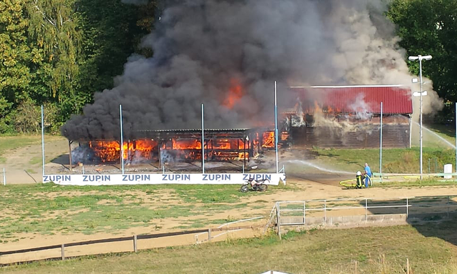 All dies fiel den Flammen zum Opfer und auch dieser Großbrand wurde durch Brandstiftung verursacht. Ersten Schätzungen zufolge steht der Verein vor einem Sachschaden im sechsstelligen Bereich, denn zwei Traktoren, ein PKW, drei Anhänger sowie zahlreiche Maschinen wurden zerstört.