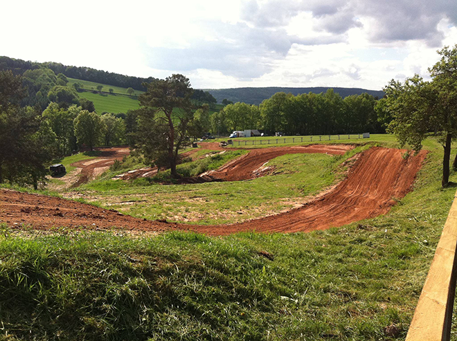 Patrik: „Wenn ich den Kaltenholzhausen höre, fällt mir als erste Charakteristik die sehr lange Startgerade ein. Am Ende immer enger werdend kann man hier vom Start weg einige Meter auf die Konkurrenz gut machen. Auf dem oberen, leider für den Zuschauer nicht einsichtigen, Streckenteil erwarten den Fahrern einige enge Kurven und kurze Sprünge, bevor es Bergab auf den leicht SX-charakteristischen Streckenabschnitt geht. Ein Doppelsprung später und die Fahrer kommen über den großen Zieltable gesprungen, zurück auf die Startgerade. In 2016 waren hier die Monster Energy Amateur Cross Finals zu Gast, die Strecke war optimal vorbereitet und ich bin mir sicher, dass der Verein auch in diesem Jahr die Strecke genauso gut präpariert.”