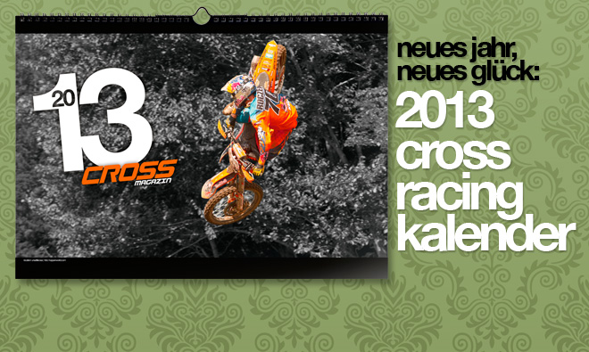 Wer bereits ein Abonnement des CROSS Magazins hat, bekommt den CROSS Racing-Kalender 2013 übrigens zum Vorzugspreis von nur 9,95 Euro (inkl. MwSt. und Versandkosten)! Einfach bei der Bestellung die entsprechende Option auswählen.