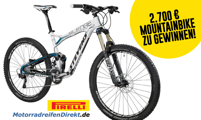 Um dich fit für die MX-Saison zu halten, solltest du aber nicht vergessen, auch mal auf die Joggingschuhe oder das Fahrrad umzusteigen. MotorradreifenDirekt.de hilft dir dabei gern und verlost im Zeitraum bis 31. Juli 2014 gemeinsam mit Pirelli als Hauptpreis ein hochwertiges Stevens-Mountainbike im Wert von ca. 2.700 Euro!
