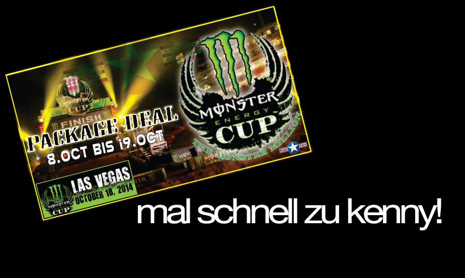 Am 18. Oktober ist es wieder soweit, wenn in Las Vegas die Hatz auf die 1 Million US Dollar beim Monster Energy Cup Race geblasen wird. Das heißt Jokerlane, ein Mega-SX-Kurs und natürlich jede Menge US-Stars live! Eventuell sieht man hier vielleicht ja sogar schon Ken Roczen auf einem neuen Bike sitzen? Wer weiß…