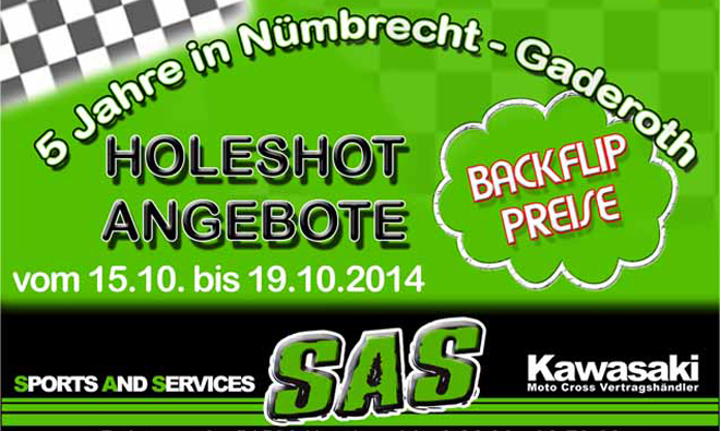 Die Firma SAS Racing feiert in dieser Woche vom 15. bis zum 19. Oktober ihr 5-jähriges Bestehen in Nümbrecht-Gaderoth. Aus diesem Anlass erwarten euch noch bis Sonntag jeweils in der Zeit von 9 Uhr bis 19 Uhr jede Menge super Angebote.