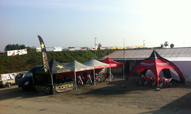 Der bayrische Track ist aufgrund der vielen Sprünge und Anlieger eine der bekanntesten Hartbodenstrecken in Deutschland. Optimale Voraussetzungen also um die neue 2014er Honda CRF250R und CRF450R auf Herz und Nieren zu prüfen und damit ihr nicht ewig lange auf ein freies Test-Bike warten müsst, stellt Honda Meyer jeweils vier CRF250R und CRF450R zur Verfügung. Neben dem Testride ist die Strecke auch für Jedermann mit den eigenen Bikes befahrbar, sodass ihr euch den ganzen Tag auf dem großen Gelände austoben könnt. Als weiteres Schmankerl ist auch Rockstar Energy mit ihrem Promotion-Stand vor Ort und versorgt alle eifrigen Tester mit gratis Getränken.