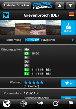 Aber wir haben noch mehr Entwicklungszeit investiert. Nun erkennst du auf einen Blick, ob es sich bei den Strecken um eine öffentliche Trainingsstrecke, eine reine Rennstrecke oder um eine reine Clubstrecke handelt! Und damit du weißt, ob sich die Anfahrt auch lohnt, dürfen die Strecken mit User-Kommentaren bewertet werden und sogar Bilder lassen sich zum Streckenprofil direkt vom Handy und Smartphone aus hochladen.