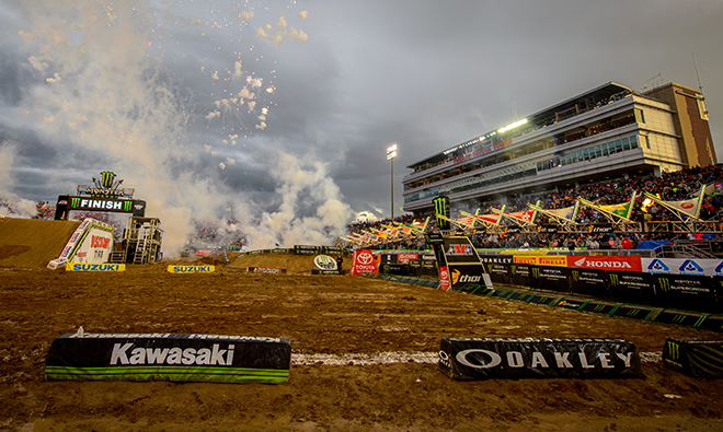 Nachdem uns die Monster Energy AMA Supercross Championship 2018 bereits seit Anfang des Jahres fast durchgängig Woche für Woche mehr oder weniger in Atem gehalten hatte, steht am kommenden Wochenende mit dem insgesamt 17. Aufeinandertreffen der finale Showdown der diesjährigen US-SX-Serie auf dem Rennkalender. Für diesen Schlagabtausch, der von einigen Fans und Fahrern sehnsüchtig herbeigesehnt, für andere hingegen viel zu früh ansteht, geht es wie aus der Vergangenheit gewohnt in das altehrwürdige – weil schon 1971 eröffnete – und gut 35.000 Zuschauer fassende Sam Boyd Stadium der Glückspielmetropole Las Vegas im US-Bundesstaat Nevada.